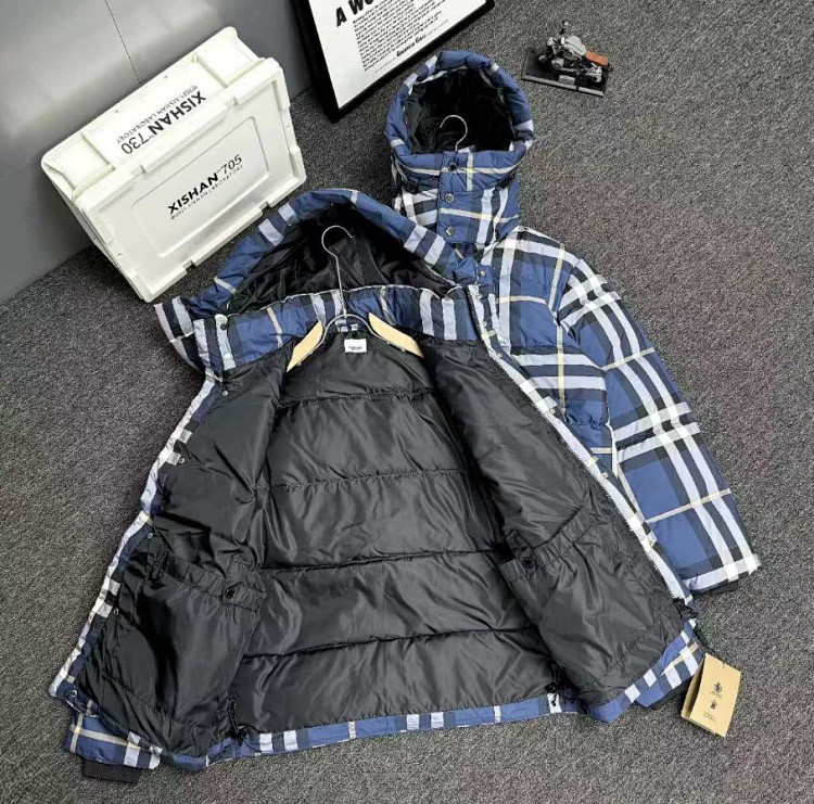 Burberry Jacket Detachable Hood Night Plaid Down Jacket-4329