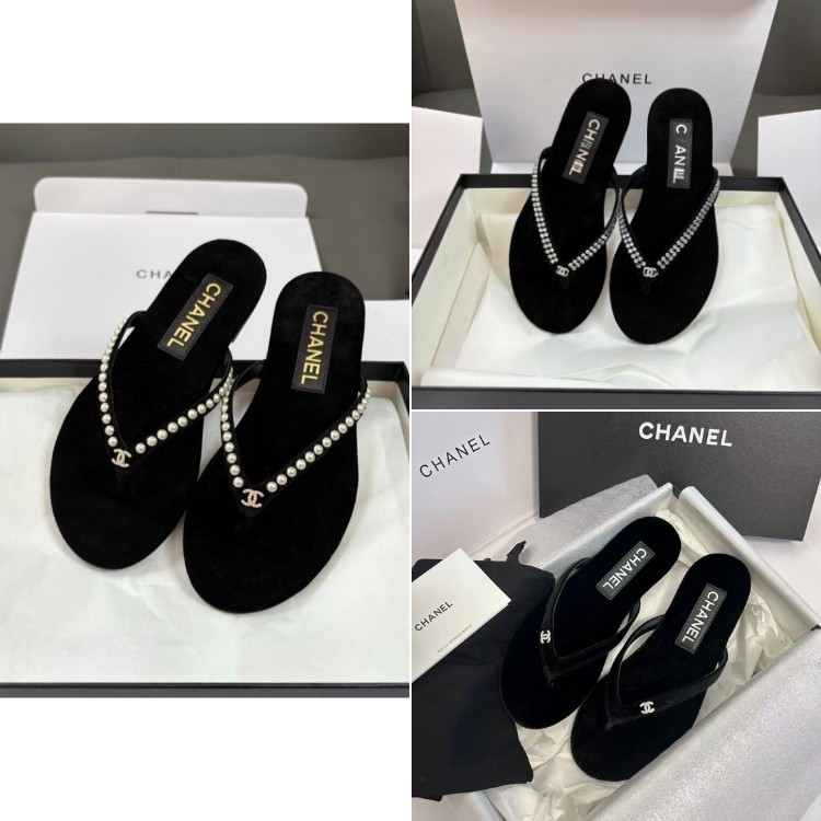 Home > Chanel rhinestone and pearl embellished velvet flat thong sandals-5697