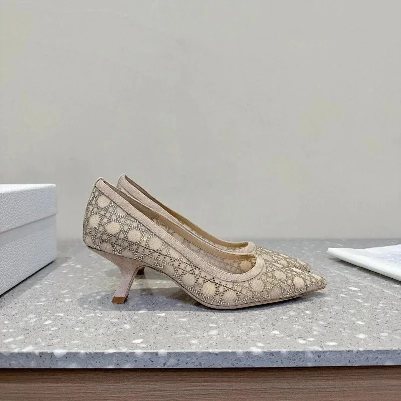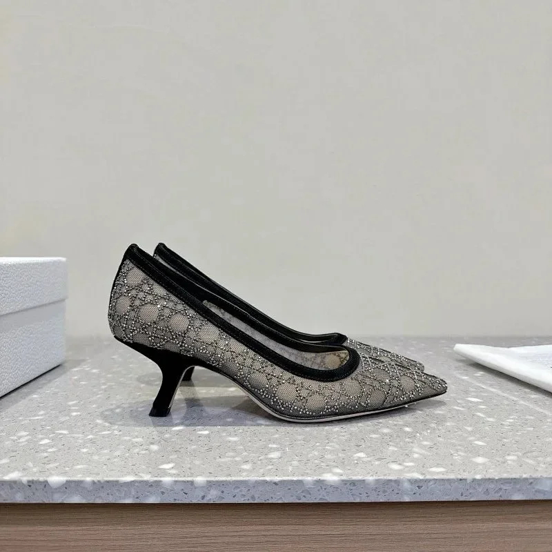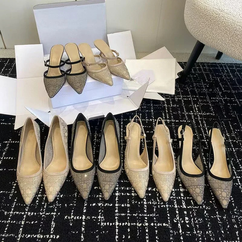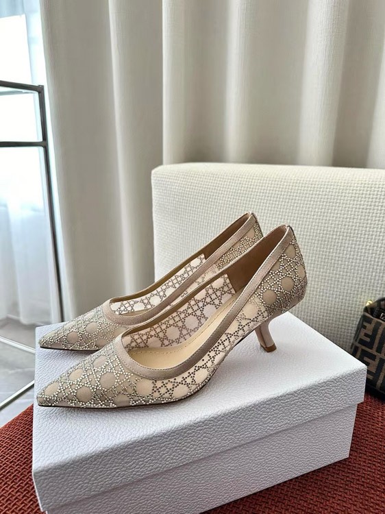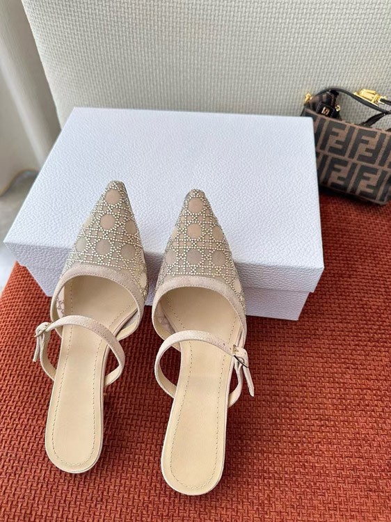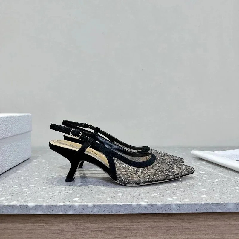Home > DIOR Capture pointed-toe mesh slingback kitten heels with rhinestone embellishments-5207