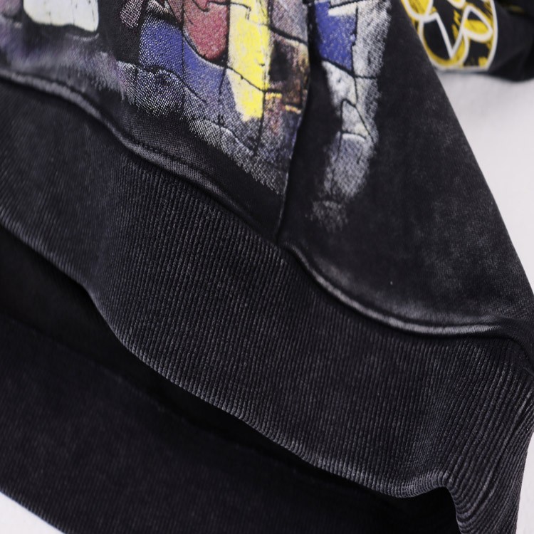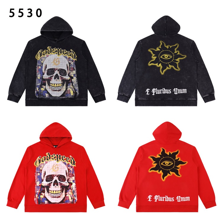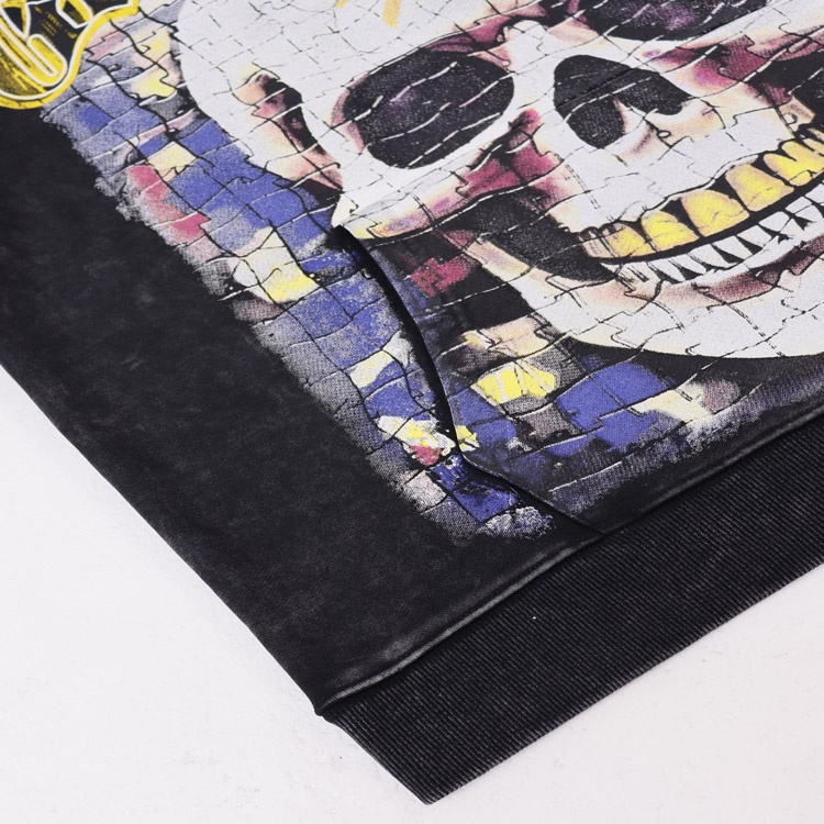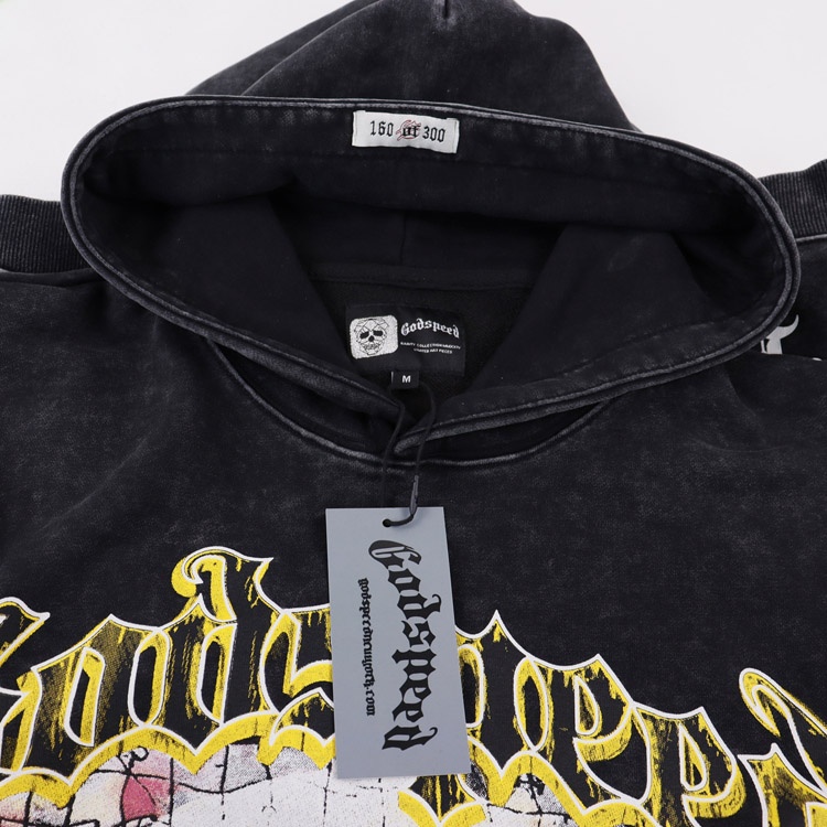 Godspeed Skull Print Retro Cotton Terry Loose Hooded Sweatshirt-4565