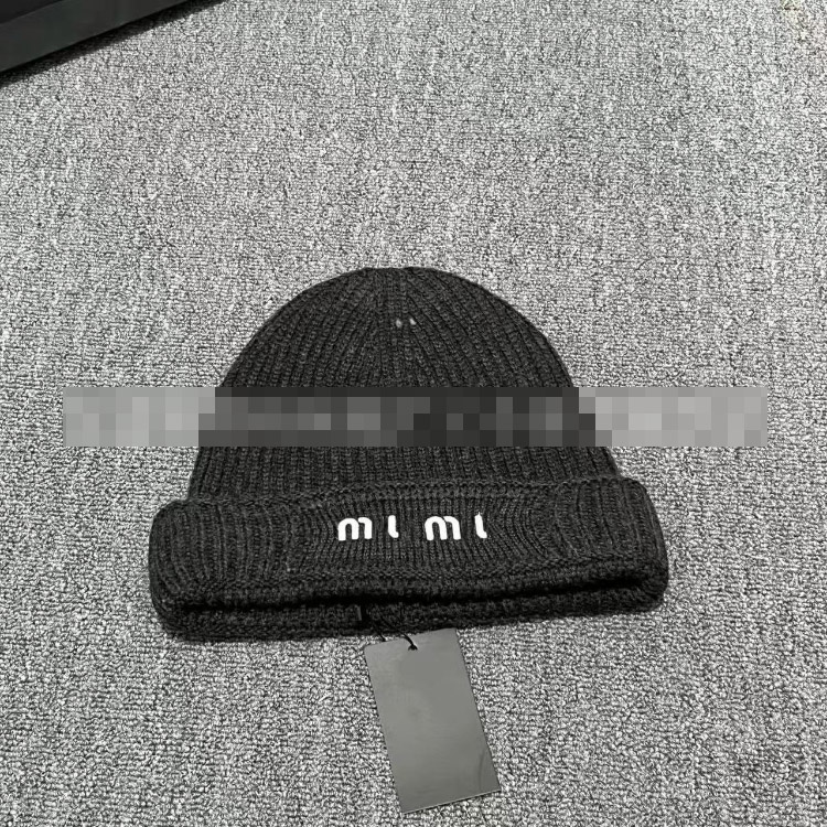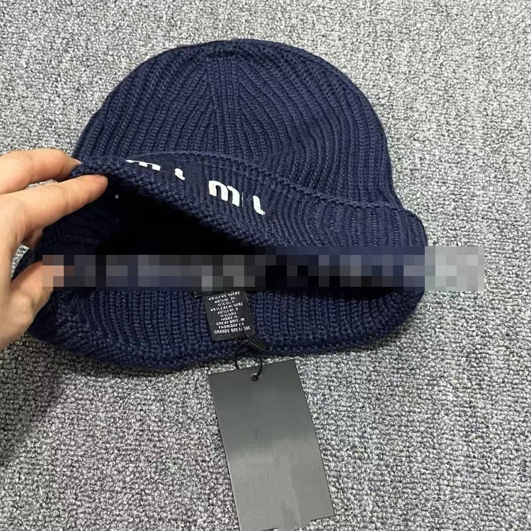 Miu Miu letter-embroidered ear-warming knitted hat-5845