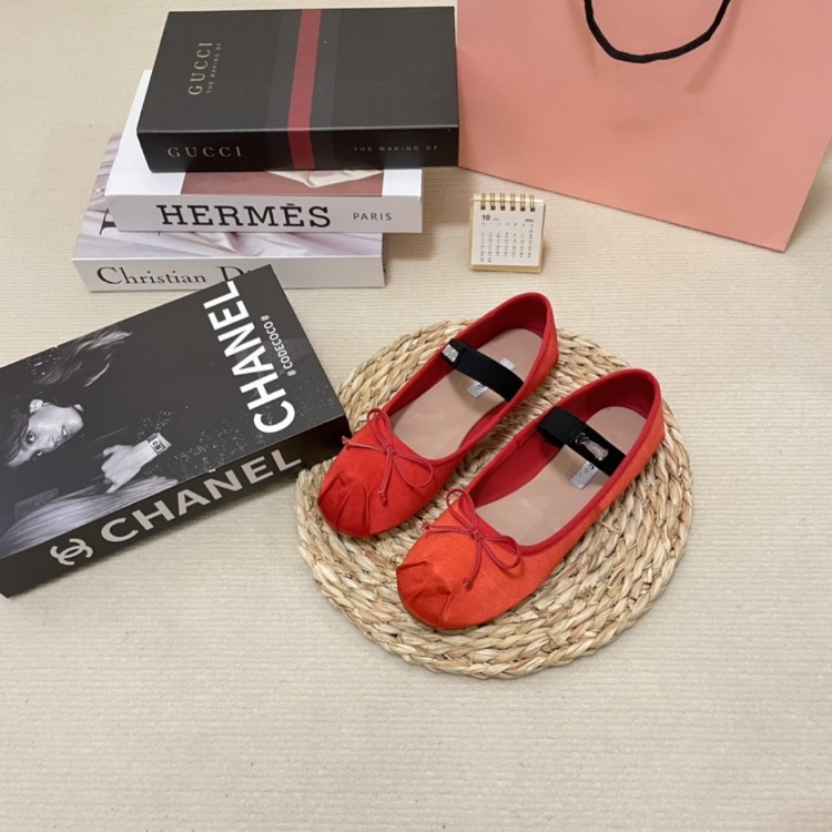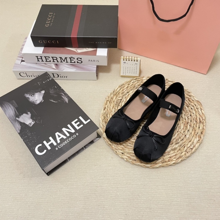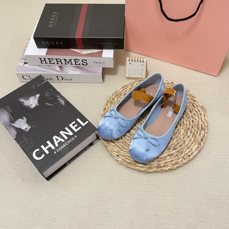 Home > Miu Miu new silk flat ballet shoes with bow detail-5717