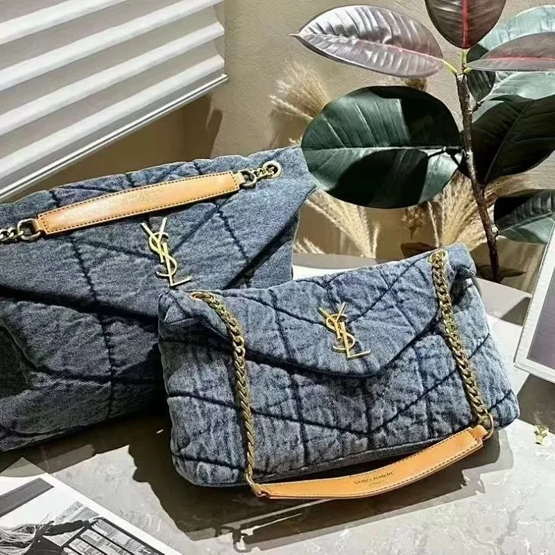 Home > Saint Laurent YSL Denim Shoulder Bag with Metal Hardware and Chain Strap-4632
