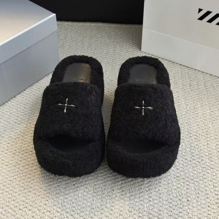 SMFK Non-slip Platform Wedge Velvet Slippers-5696