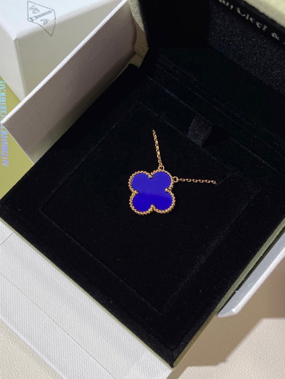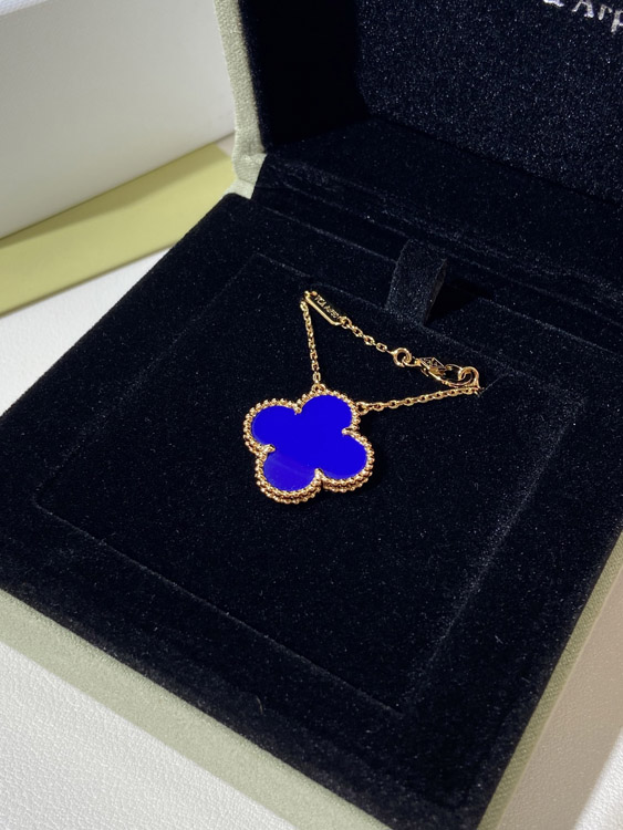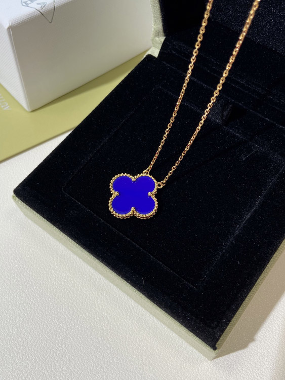 Home > Van Cleef & Arpels four-leaf clover gold blue obsidian wide necklace-3791