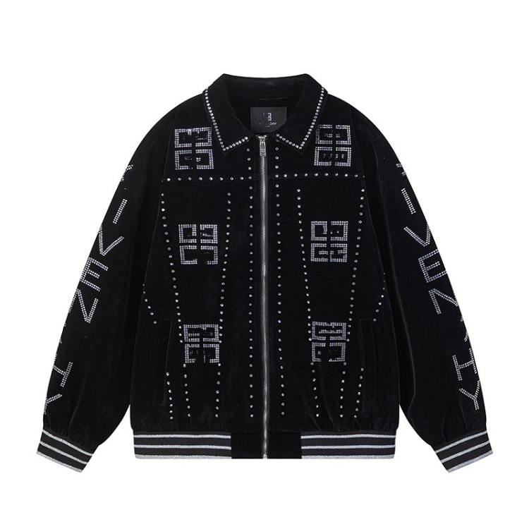 Balenciaga Givenchy velvet embroidered rhinestone men's casual loose baseball jacket-5328