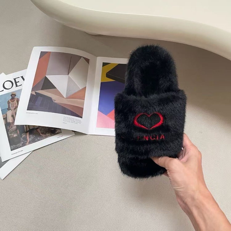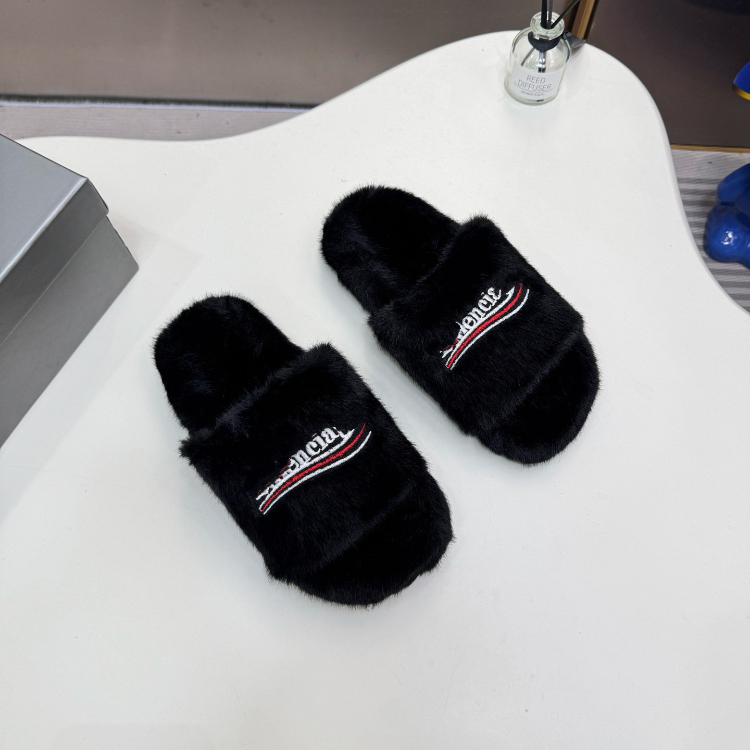 Balenciaga new embroidered logo fur-lined slip-on sandals-5690