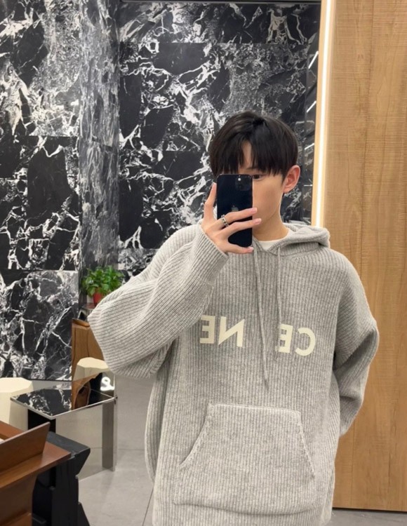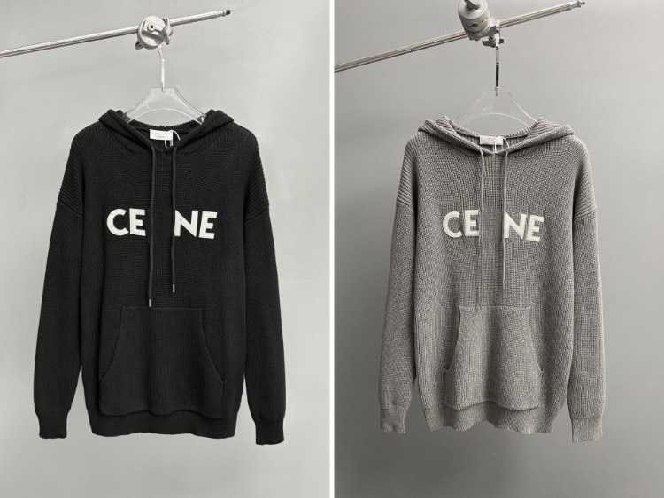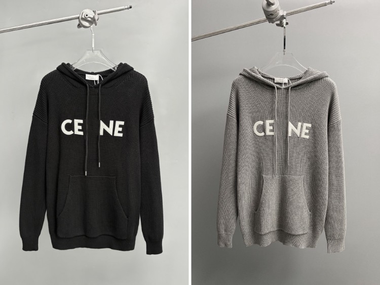 Celine logo patch wool hooded knitted sweater-5448