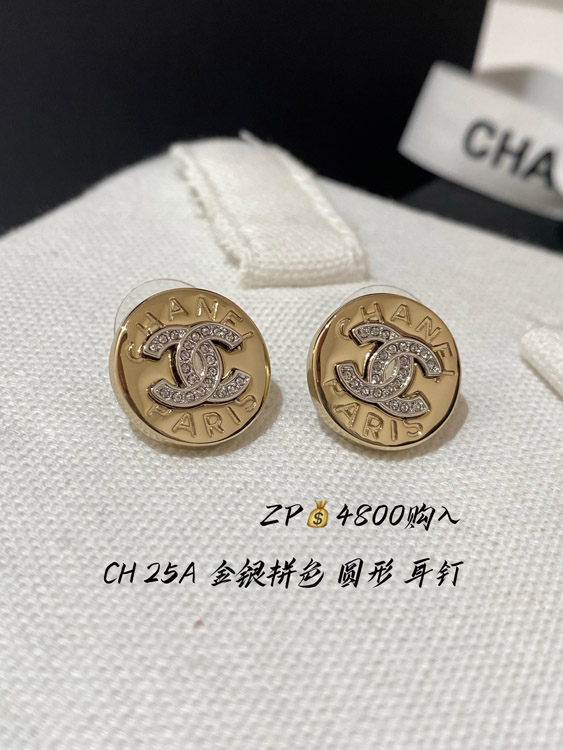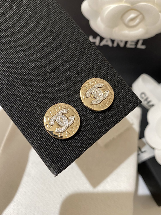 Home > Chanel gold and silver color matching round earrings-3592