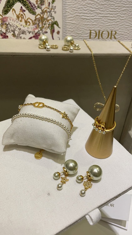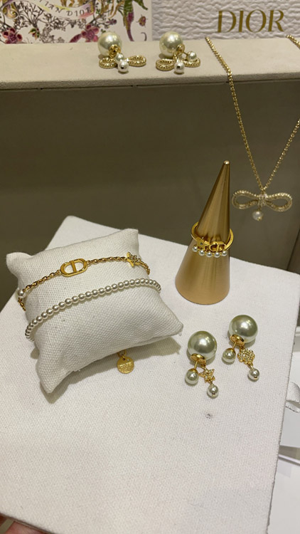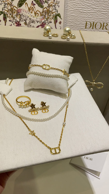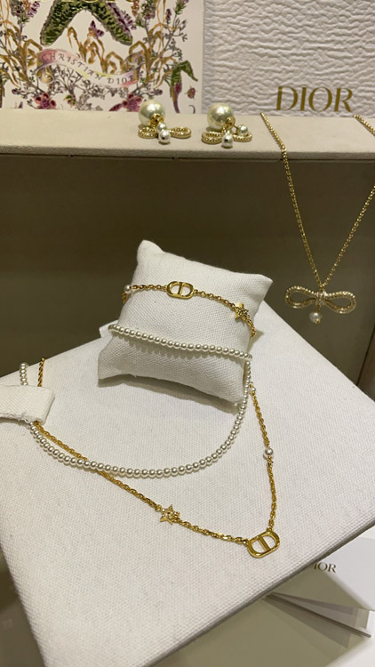 Dior gold diamond star pearl chain double bracelet-3704
