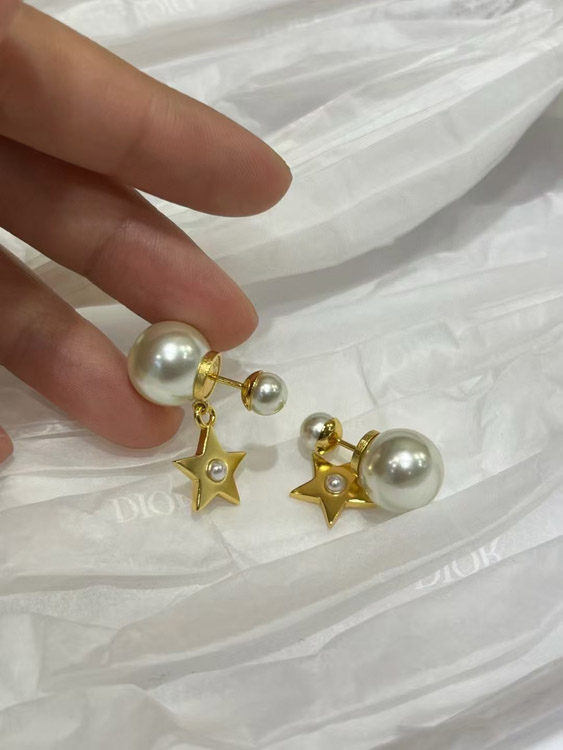 Dior gold star pearl double ball earrings-3707