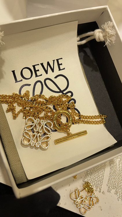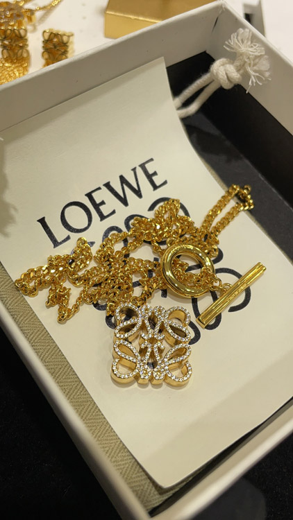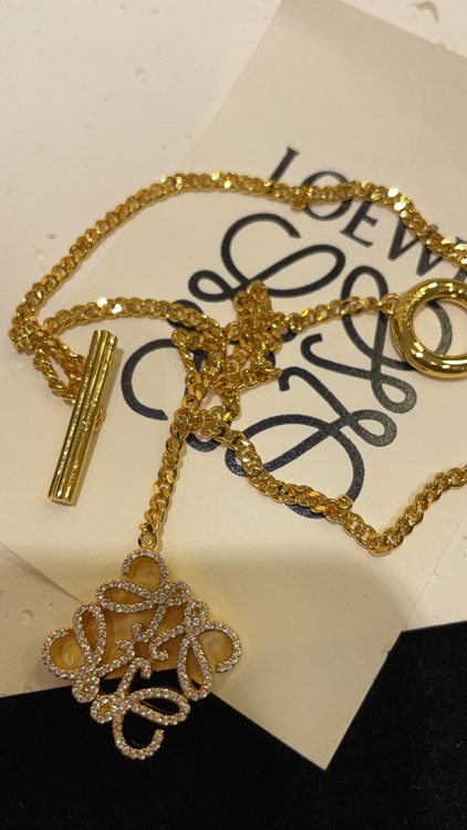 Home > Loewe gold full diamond cube TO buckle necklace-3719