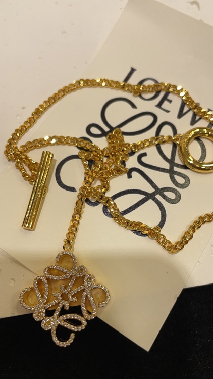 Loewe gold full diamond cube TO buckle necklace-3719