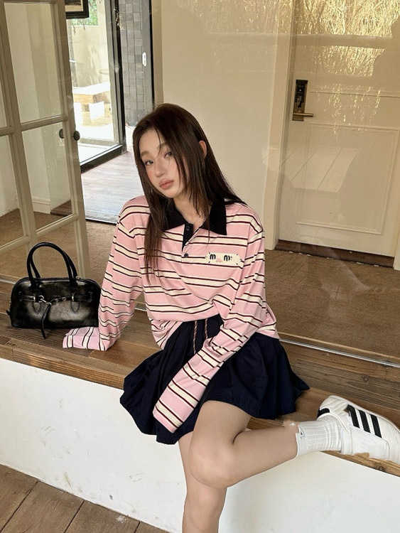 Miu Miu's new collared patchwork casual versatile polo shirt T-shirt-5371