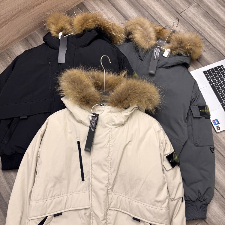 Stone Island 90% Down-filled Hooded Jacket with Fur Collar-5250